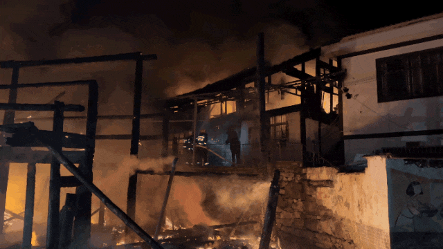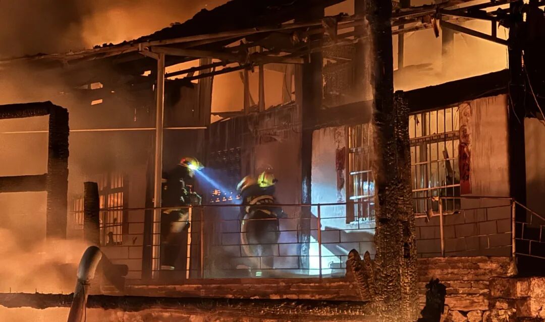 消防員抵達現場后偵查發現,起火房屋為木質自建民房,火勢處于燃燒階段,現場無人員被困。消防員隨即架設水槍,從多方位開展滅火作業,后續成功撲滅明火。之后,消防員對現場進行全面清理排查,確認無復燃風險后,收整裝備歸隊。?