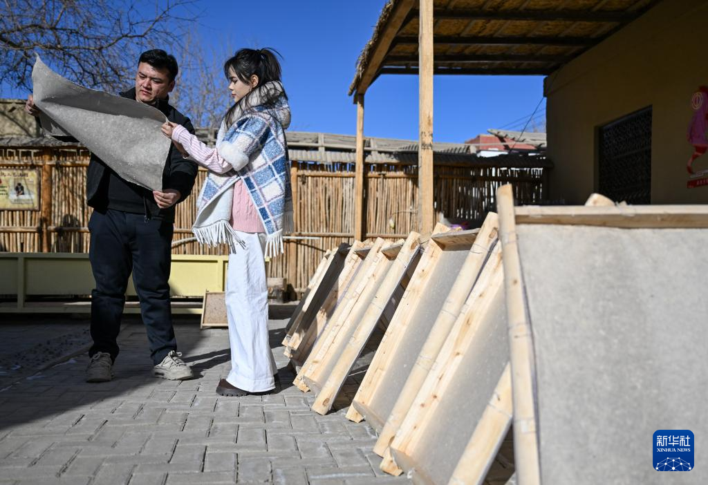 冬日清晨,一縷暖陽穿透薄霧,輕柔漫過新疆和田地區(qū)墨玉縣桑皮紙產(chǎn)業(yè)園。24歲的穆耶賽爾·艾合麥提托合提靜坐在工作室門前,低眉執(zhí)筆,細細勾勒著桑皮紙文創(chuàng)的設(shè)計稿。