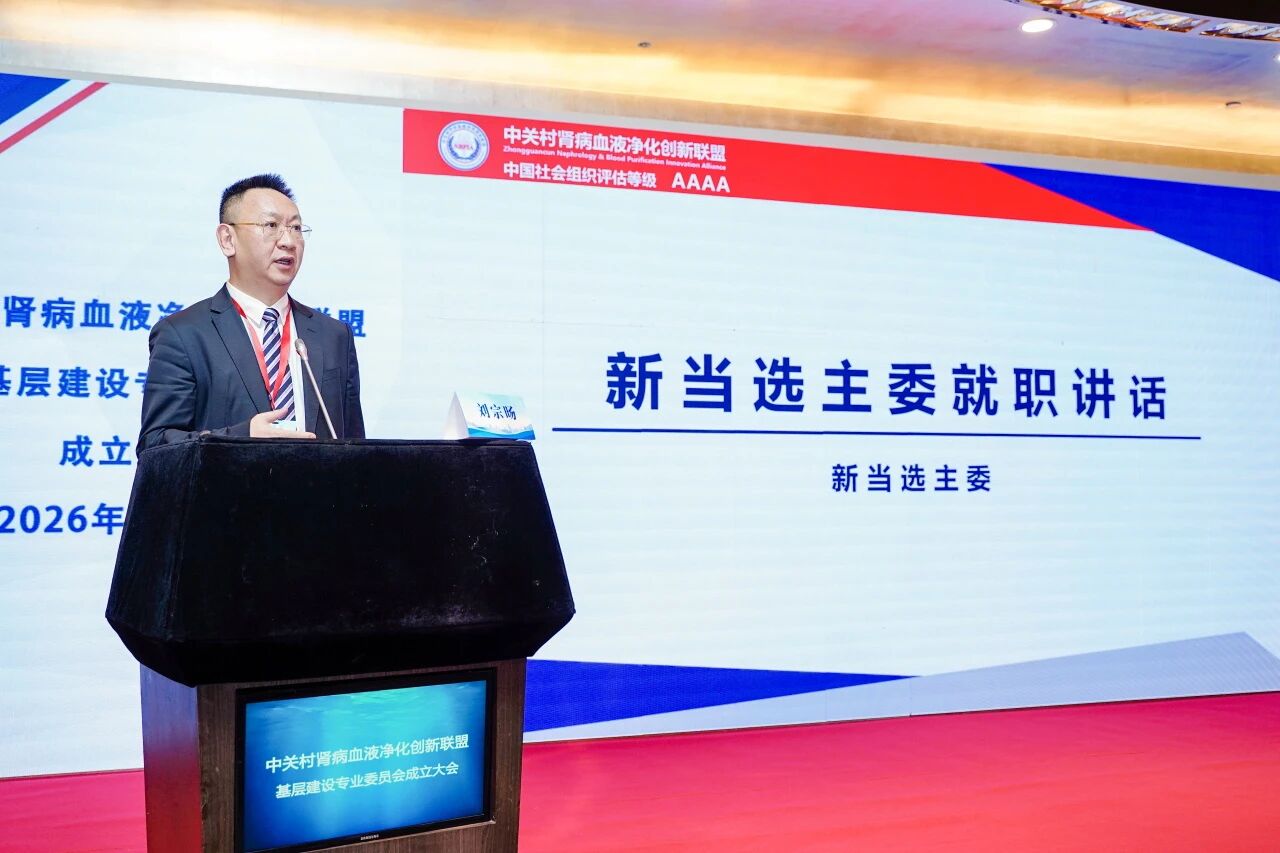 1月18日上午,會議同期召開了“中關村腎病血液凈化創新聯盟基層建設專業委員會”成立大會,我院劉宗旸副院長成功當選專委會第一屆主任委員(貴州)、陳彥副主任當選專委會常委、姜燕主任醫師當選專委會秘書長(貴州)、梅俊卿技師當選專委會委員。專委會由云、貴、川三省共221位專家組成,其中貴州有77位醫護專家當選委員。專委會成立后將致力于推動基層腎病及血液凈化事業不斷發展進步。