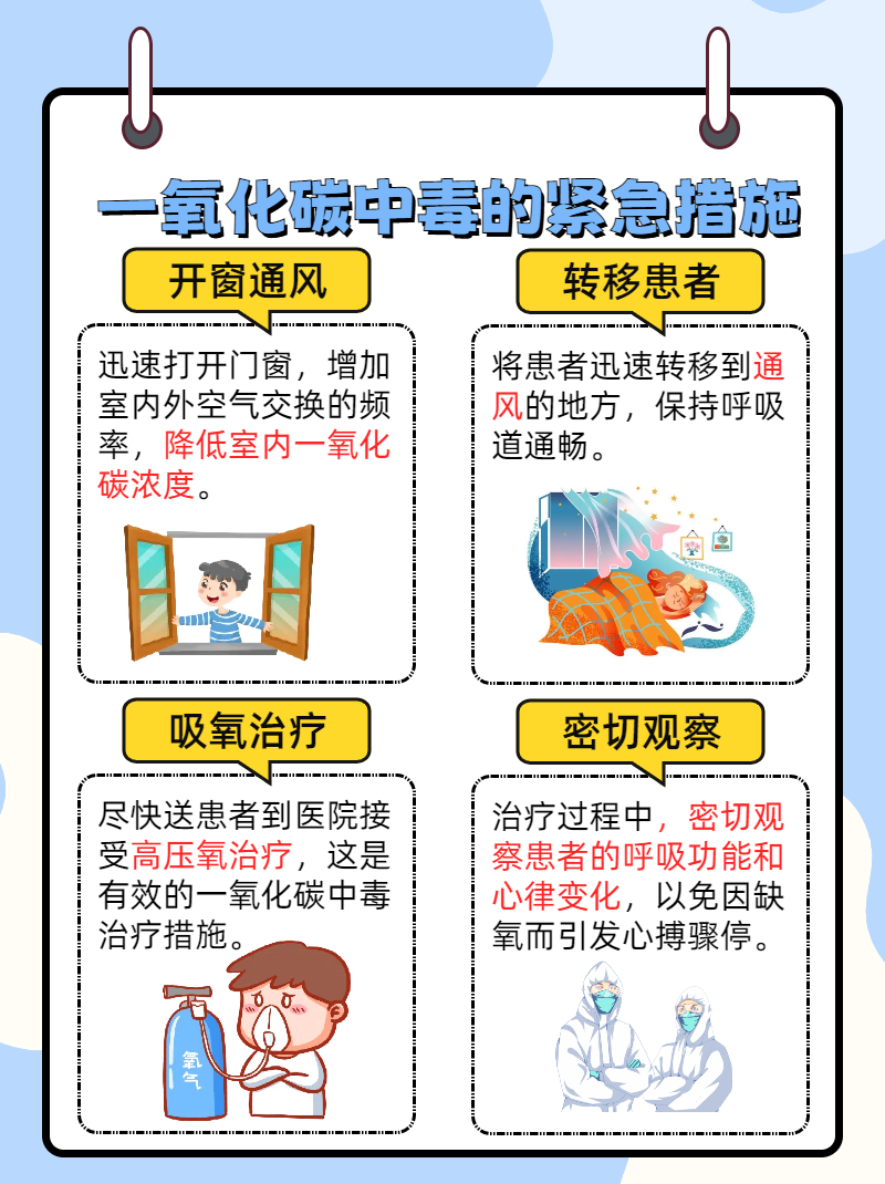 冬季取暖期也是一氧化碳中毒高發期,煤爐取暖、燃氣設備使用不當、密閉空間內發動汽車引擎等均可能引發中毒,初期癥狀為頭痛、頭暈、惡心嘔吐,嚴重時危及生命。建議優先選擇集中供暖,使用煤爐取暖時需保持通風,煤炭燒盡后切勿悶蓋,可安裝一氧化碳探測器并定期檢修。燃氣熱水器需選正規產品并由專業人員安裝,使用時保持通風,燃油車切勿在密閉車庫內長時間怠速,避免在門窗緊閉的車內開空調睡覺。