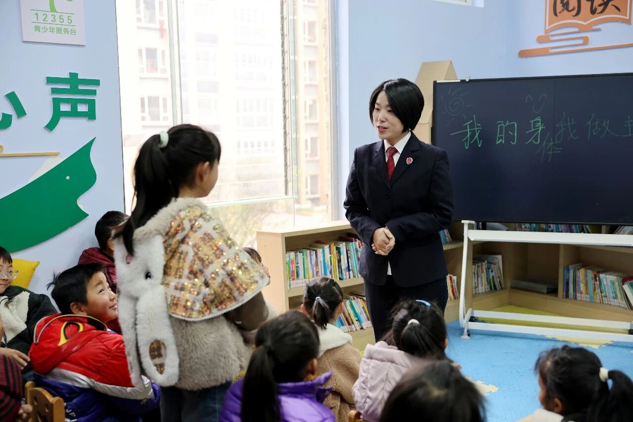 檢察官姐姐與孩子們共學(xué)自護(hù)知識(shí),“背心褲衩覆蓋的地方,不許別人碰!”照片定格在孩子們跟著檢察官一起大聲朗讀自護(hù)口訣的瞬間。