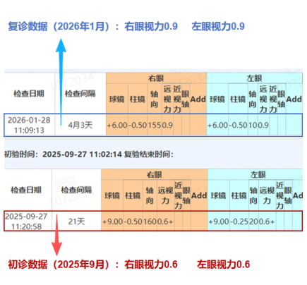 2025年9月,樂樂在家長陪同下來院就診,檢查結果令人關注:雙眼高度遠視達900度,視力均為0.6,明顯低于6歲兒童視力正常參考值(通常≥1.0)。這一高度遠視正是引發弱視的主要原因。
