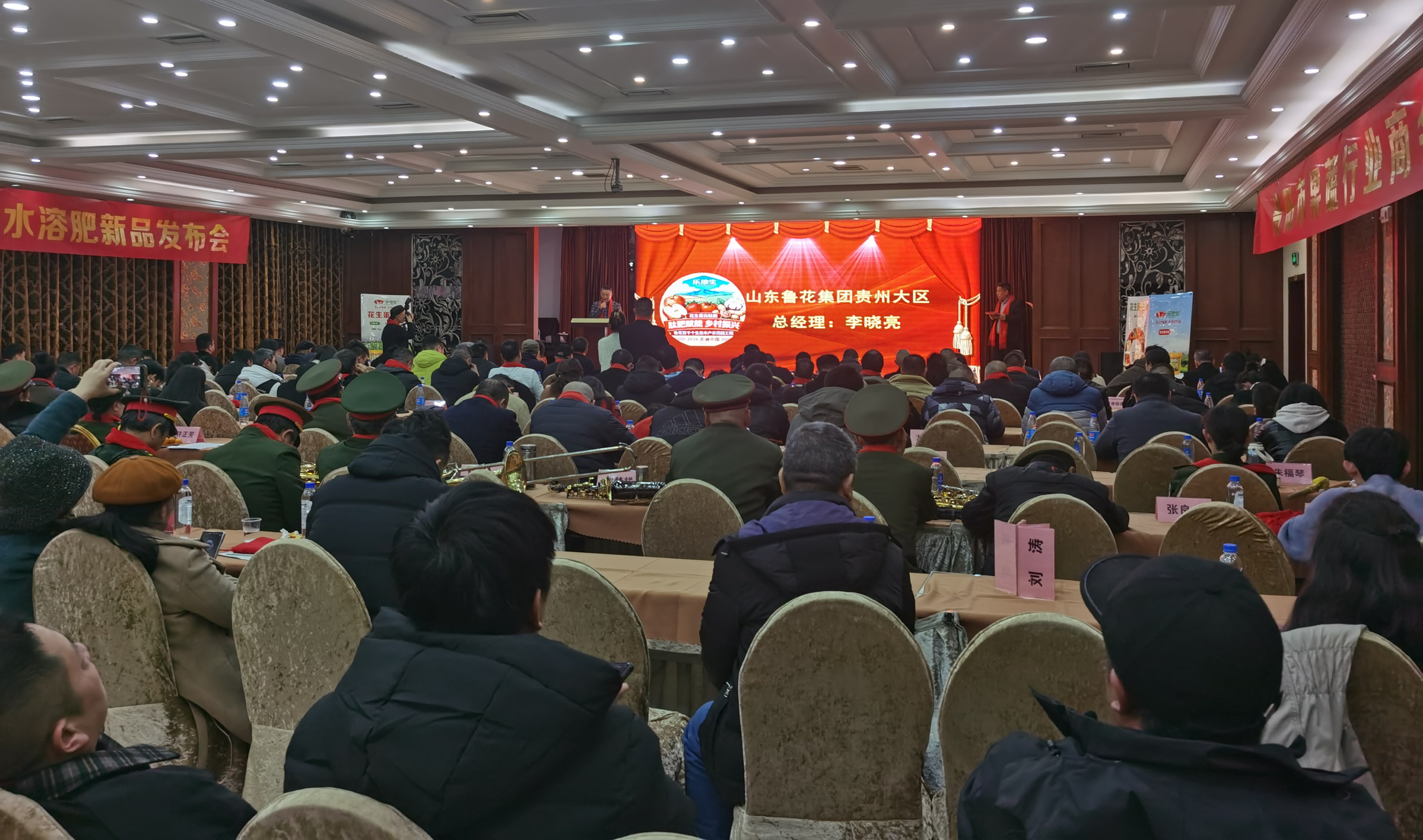 2026年1月28日,貴陽市果蔬商協會2026年年會暨魯花樂地生花生蛋白肽水溶肥新品發布會在白云區隆重舉行。本次活動由山東魯花地生生物科技有限公司與貴陽市果蔬行業商會聯合主辦,來自政府部門、種植基地、行業協會及魯花集團的代表共200余人參會,共同見證魯花功能性水溶肥在西南市場的正式落地,同時迎來魯花醬香經典白酒的榮耀上市。