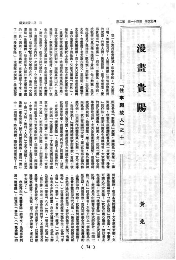 黃堯先生在貴陽期間與學者名流交往甚密,他晚年發表在臺灣《傳記文學》上的一篇文章,親切地回憶了當年他與貴州學者謝六逸、陳恒安等雅聚的情景,這也成了貴州文壇史上的一段佳話。