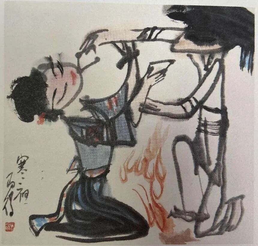 我畫這套畫時,也就是二十多歲,初生牛犢不怕虎,考慮不多,拿起筆就畫。我畫得很順手,沒有框框,沒有拘束,似乎是即興地、恣意地流露出來的。這些畫是土法的用筆,漫畫的夸張,又帶著漢畫的呆氣。