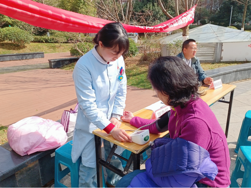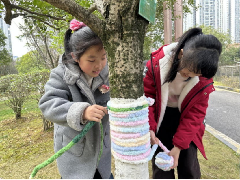 理論學習結束后,30余名志愿者與社區居民、少年兒童一同,實地走訪小區垃圾分類投放點、“煥好物”宣傳欄及可回收物暫存區,直觀感受環保設施規范化運行成效、學習垃圾分類治理經驗,實現從理念認知到行動自覺的跨越。現場實踐亮點紛呈,參與者分組為樹木纏繞保暖毛線踐行護綠責任,書法老師書寫環保主題春聯與福字傳遞綠色祝福,華夏骨科醫院醫護人員開展義診服務傳遞溫情,讓活動兼具生態深度與民生溫度。