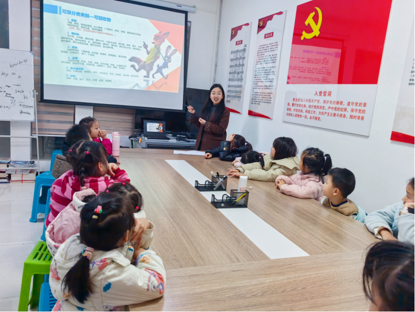 活動開始,高倩老師通過趣味動畫演示、實物直觀講解等方式,系統解讀垃圾分類標準及可回收物再利用技巧,在互動問答環節進一步強化參與者環保認知、筑牢理論基礎。
