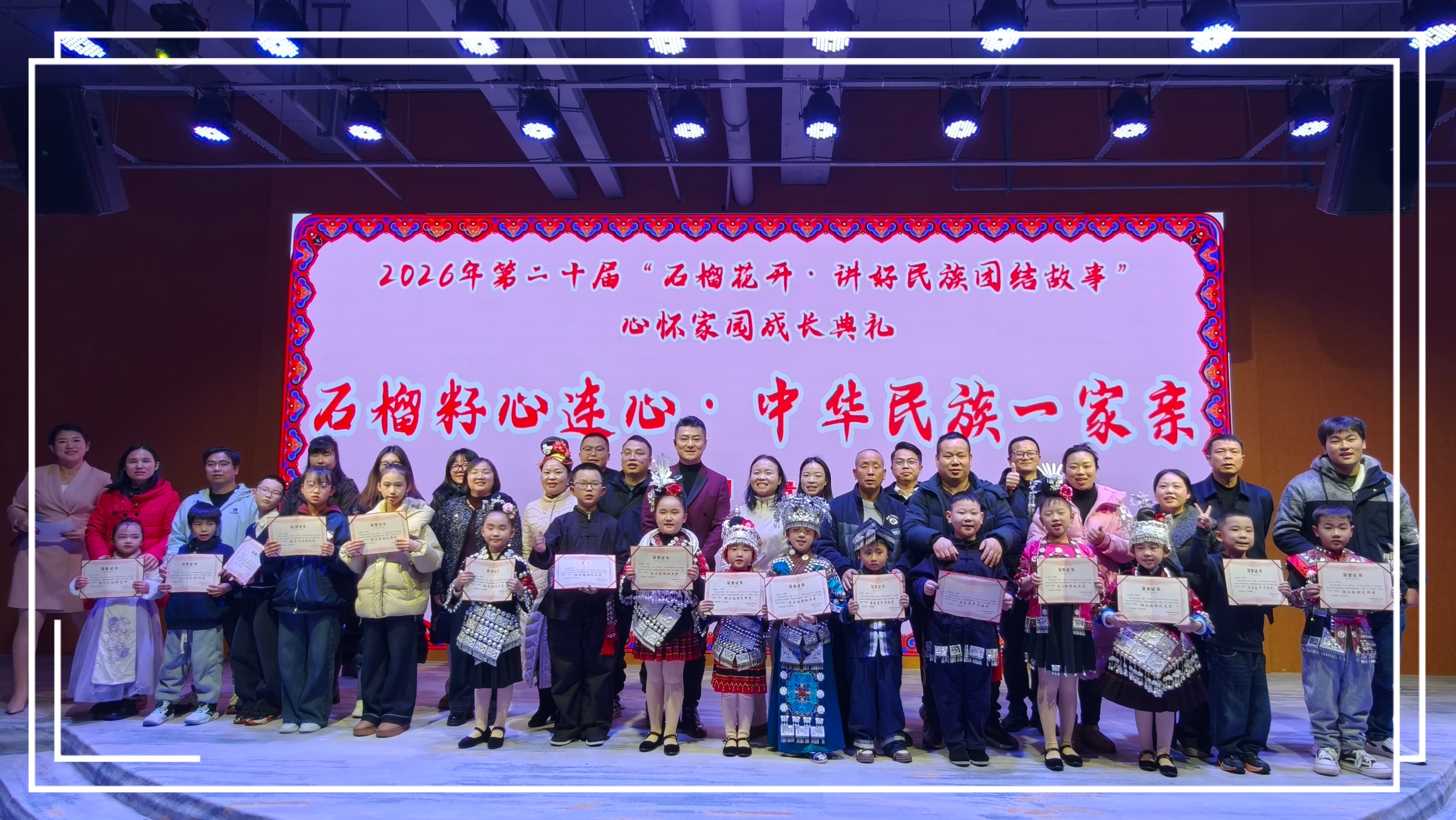 2026年1月30日,第二十屆“石榴花開·講好民族團結故事”心懷家園成長典禮在貴陽觀山湖石榴花開民族文化展播廳成功舉行。