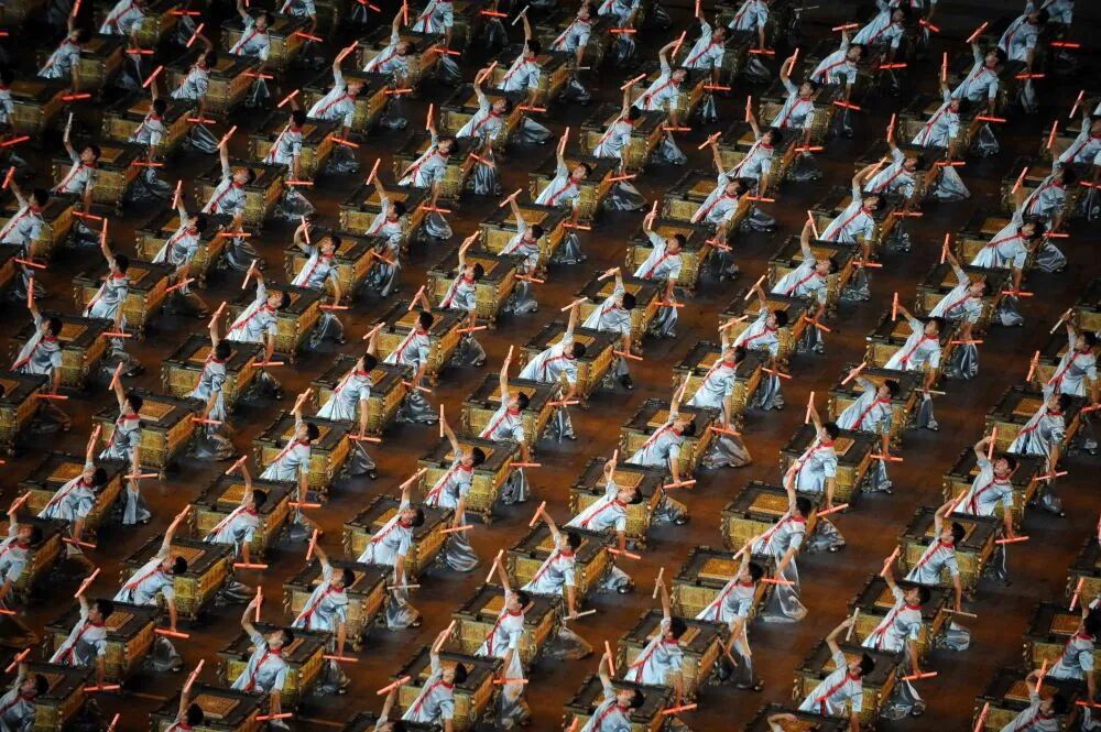 2008年北京奧運會開幕式上,2008名演員在開幕式歡迎儀式開始時擊缶而歌,歡迎來自全世界的朋友。新華社記者 楊磊 攝